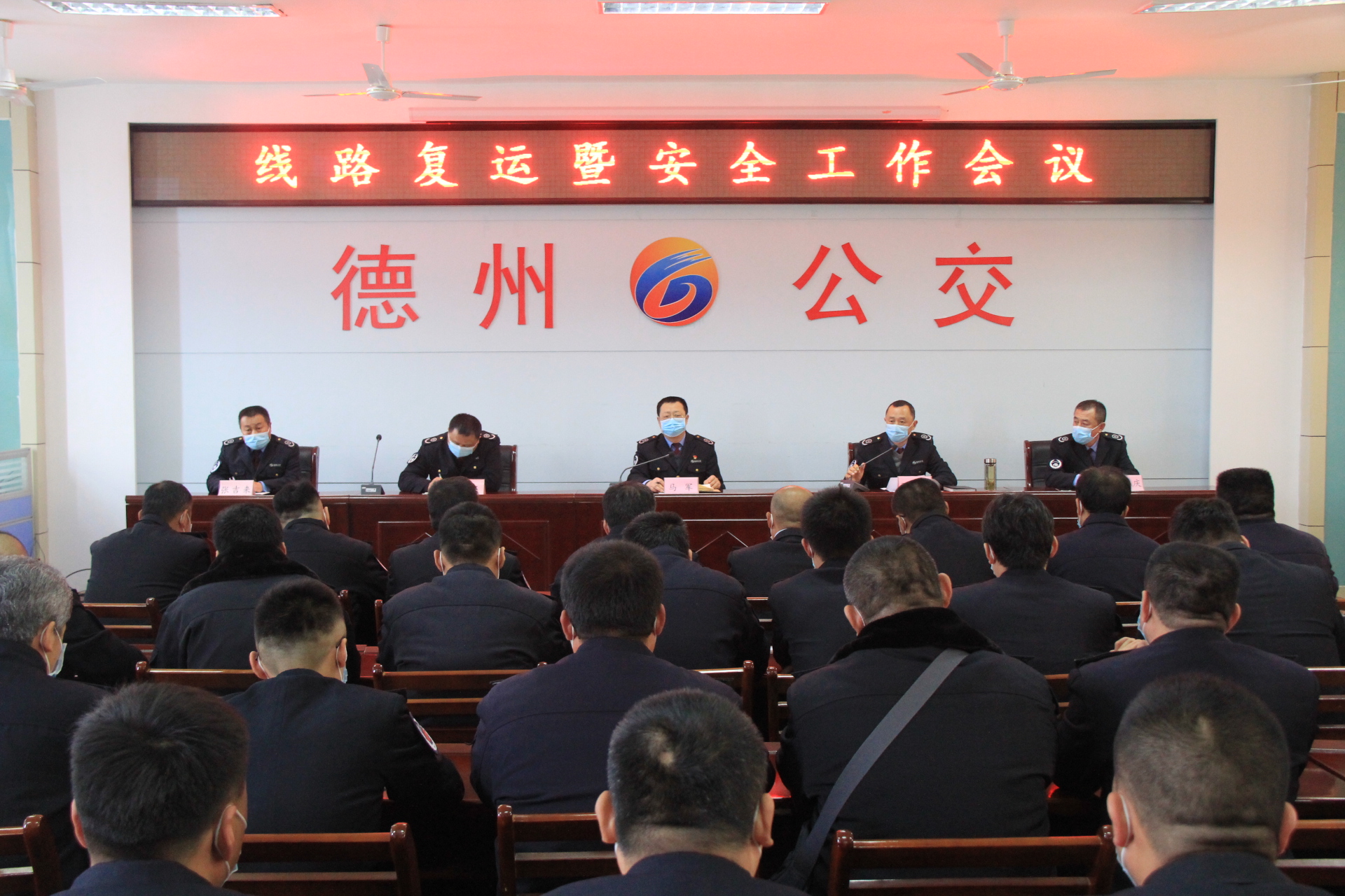 会上,孙培功副经理首先对疫情防控及线路复运工作提工作要求,他提到:一是要做好员工的自身防护,要求员工上班期间要戴好口罩,严格执行“一次一消毒”、“每趟车通风”;二是复运前对车辆进行安全隐患排查,彻底消除各类安全隐患;三是复运后要做好乘客体温测量及扫码乘车,监督所有乘客佩戴口罩。