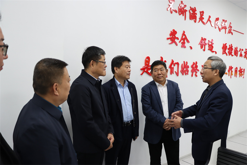与会领导参观了新能源公家车实训基地、公交客服大厅、公交智能调度和能源管理指挥中心等地。
