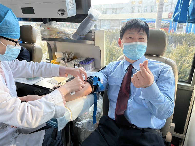 二分公司副经理张晨英,来到献血车,这是她第22次参加献血,作为一名党员,在得知单位组织无偿献血活动便果断报了名,“很荣幸能为北京冬奥会和残奥会期间血液保障工作贡献自己一份力量,身为一名党员,奉献自己的一片爱心,用行动践行入党誓言,我感到很自豪!”