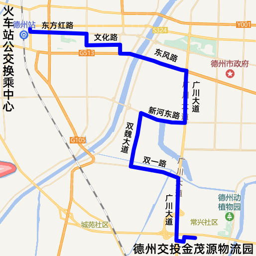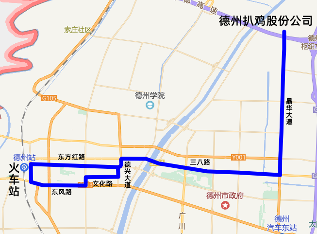 运营路线:德州扒鸡股份公司、晶华大道、三八路、德兴大道、东方红路、迎宾大街、火车站;