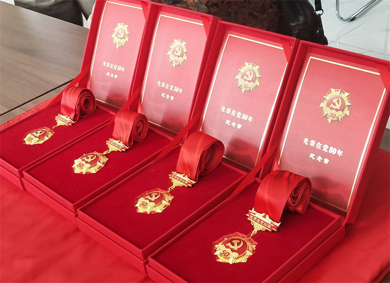 并为老党员太树桐同志、徐砚坤同志、李秀芹同志、张玉田同志等4位党龄50年以上的老党员颁发纪念章。
