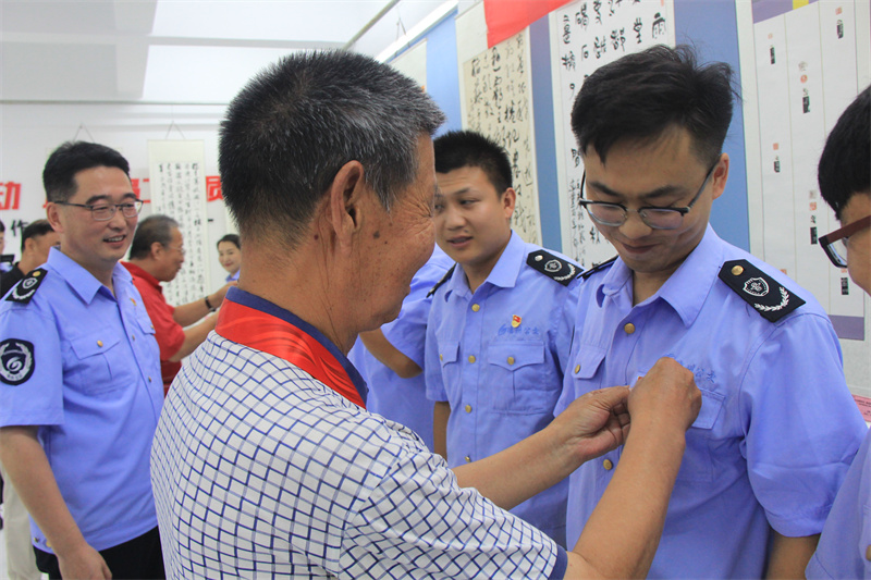 薪火相传,永葆初心。老党员们来到预备党员面前,庄严的为他们佩戴党徽,预备党员们胸前那一枚枚神圣的党徽,是一种鞭策,也是一种激励;是一种精神的传承,也是一种奋斗的延续。