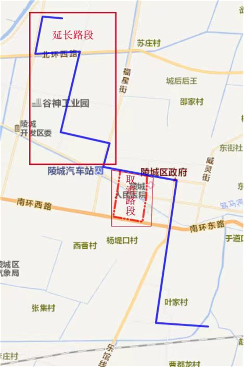 优化调整后线路走向:陵城区火车站—南环路—政府街—中兴路—福星北大街—腾达路—扶丰街—北环西路—迎宾北大街—宏祥股份有限公司,返程亦同。