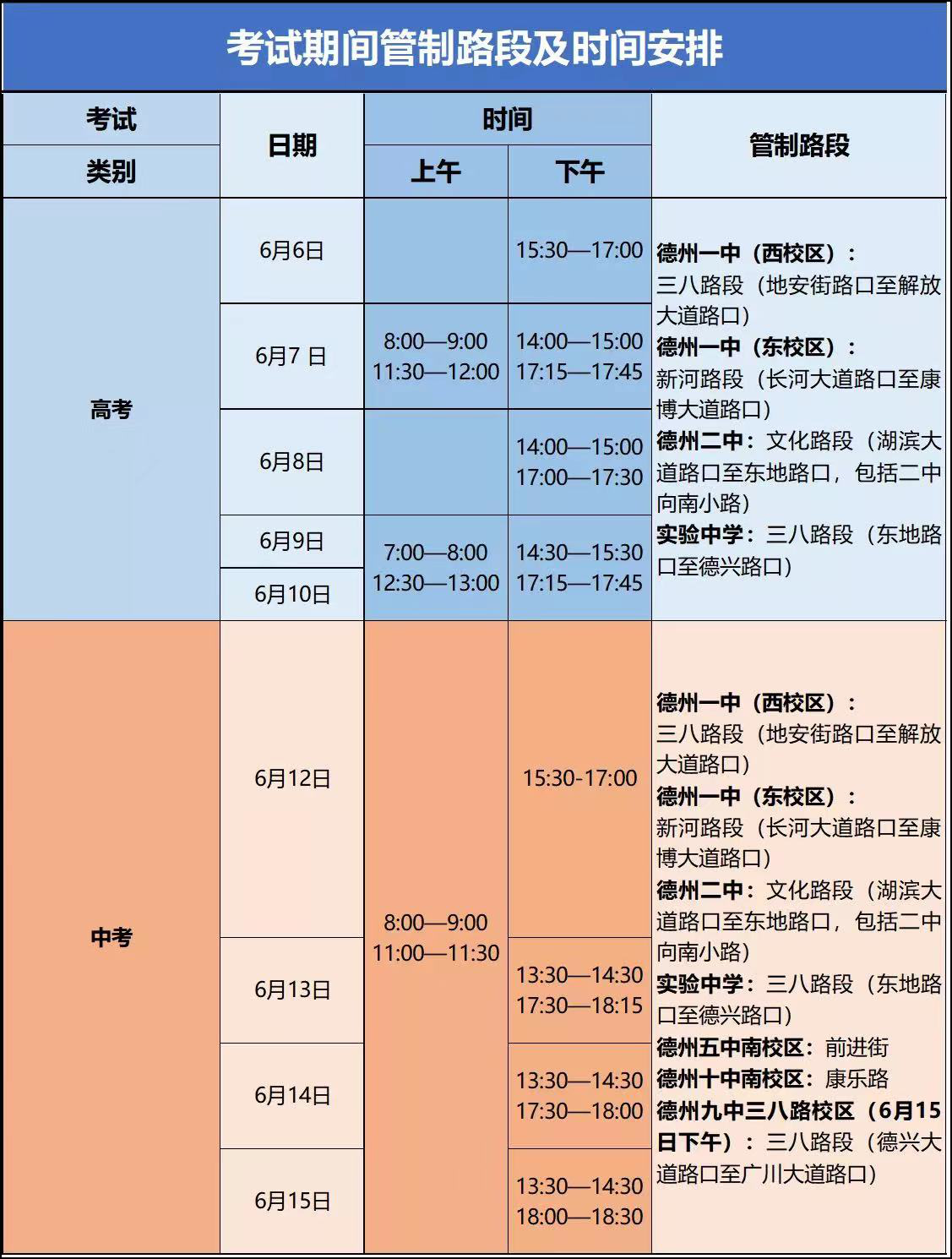 2022年夏季高考与普通高中学业水平等级考试(以下简称高考)于6月7日至10日进行,考点设在德州一中(西校区)、德州一中(东校区)、德州二中、实验中学;初中学业水平考试(以下简称中考)于6月13日至15日进行,考点设在德州一中(西校区)、德州一中(东校区)、德州二中、实验中学、德州五中南校区、德州十中南校区、德州九中三八路校区(6月15日下午)。