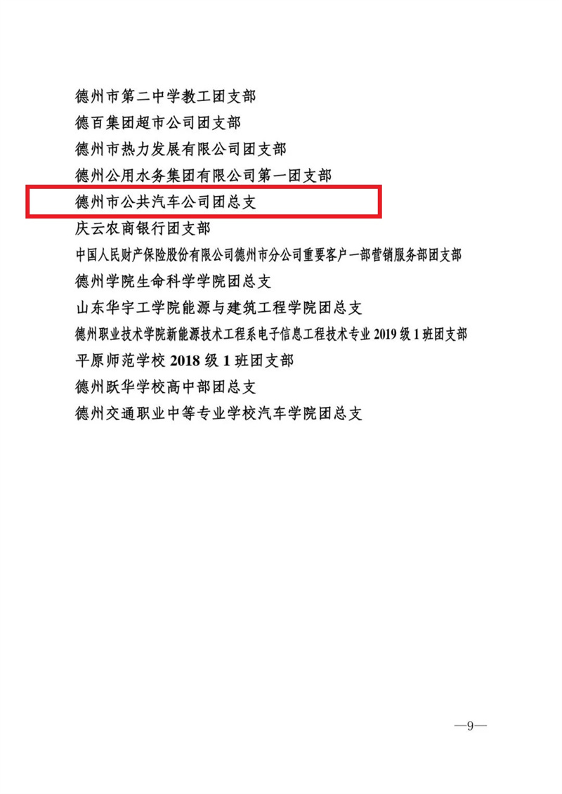 喜报!德州市公共汽车公司团委获“德州市五四红旗团(总)支部”称号