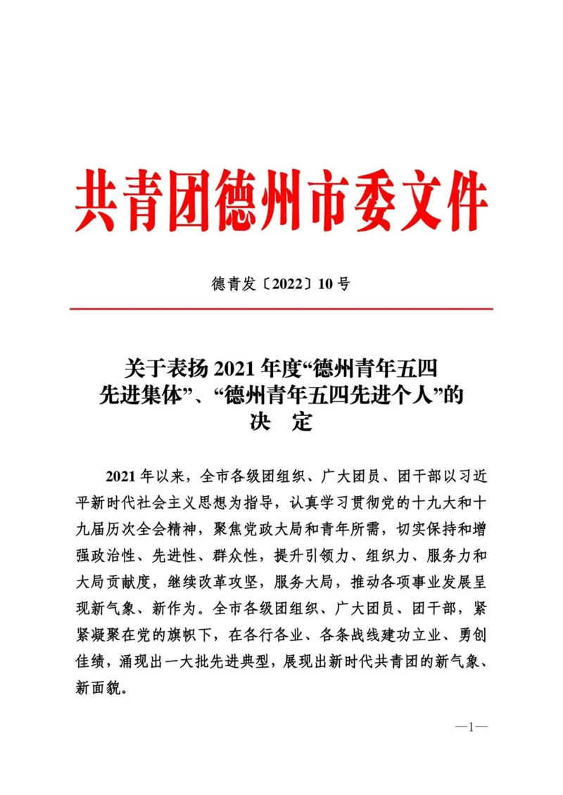 近日,德州市公共汽车公司团委被共青团德州市委授予“德州市五四红旗团(总)支部”称号。