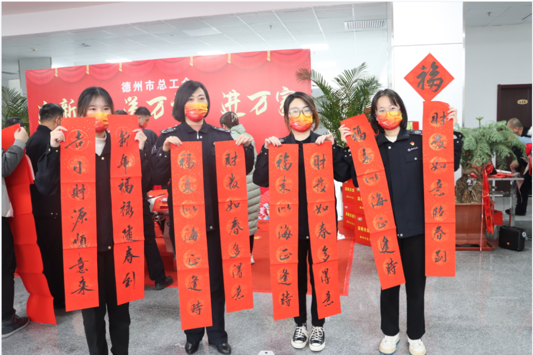 为深入学习宣传贯彻习近平新时代中国特色社会主义思想和党的二十大精神,大力弘扬中华优秀传统文化,丰富广大职工精神文化生活,营造欢乐祥和的节日氛围,由市总工会联合市楹联艺术家协会开展的“迎新春 送万福 进万家”书法志愿服务公益活动在交投公交集团举办。市国资委三级调研员李霞、市总工会四级调研员周美清、交投集团党委书记、董事长张海辉,党委副书记刘俊勇,副总经理、工会主席王贵强,市楹联艺术家协会主席陈治中,常务副主席谢秀英以及公交集团相关领导、楹联艺术家协会的艺术家代表,公交集团一线职工代表参与本次活动。