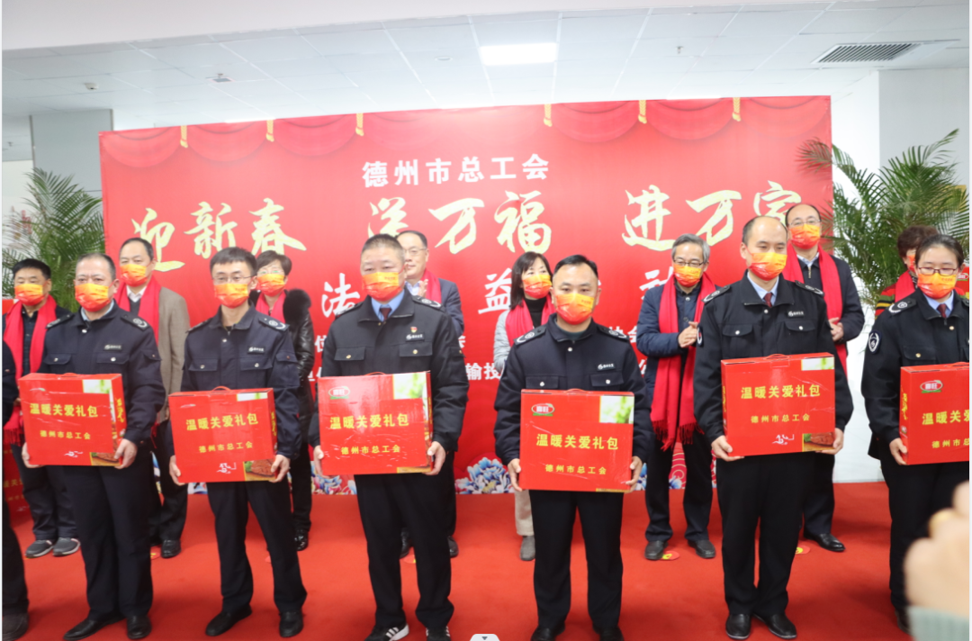 与会领导向一线职工代表发放“温暖关爱大礼包”