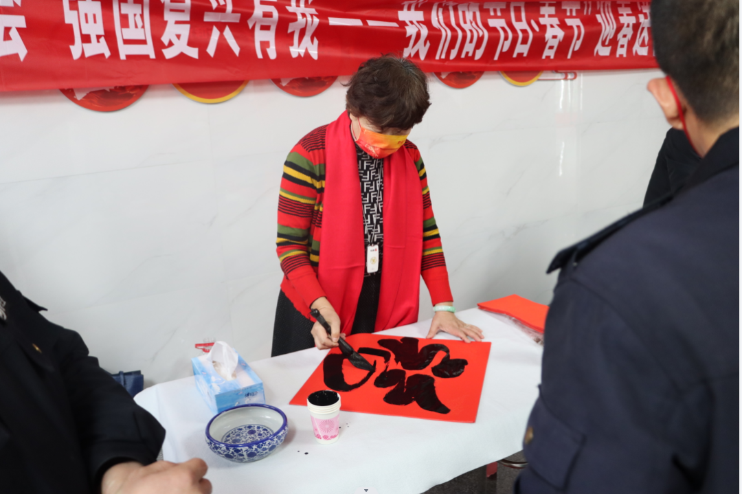 活动现场,墨香四溢。书法家们挥毫泼墨,一幅幅寓意吉祥的春联应运而生,红彤彤的春联增添了喜庆祥和的“年味儿”。现场职工纷纷称赞“这幅春联寓意不错”“这比买来的春联好看多了,既有墨香味,又有过年味”。书写春联活动持续了2个多小时,共书写春联福字二百余幅,把满载兔年祝福和美好心愿的福字和春联在群众手中传递,营造了传承中华优秀传统文化迎新年迎新春的浓厚氛围。