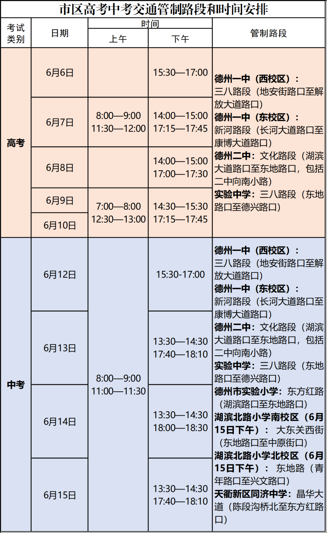 2023年普通高等学校招生全国统一考试与普通高中学业水平等级考试(以下简称高考)于6月7日至10日进行,考点设在德州一中(西校区)、德州一中(东校区)、德州二中、实验中学、陵城区第一中学;初中学业水平考试(以下简称中考)于6月13日至15日进行,考点设在德州一中(西校区)、德州一中(东校区)、德州二中、实验中学、德州市实验小学、湖滨北路小学南校区(6月15日下午)、湖滨北路小学北校区(6月15日下午)、天衢新区同济中学。