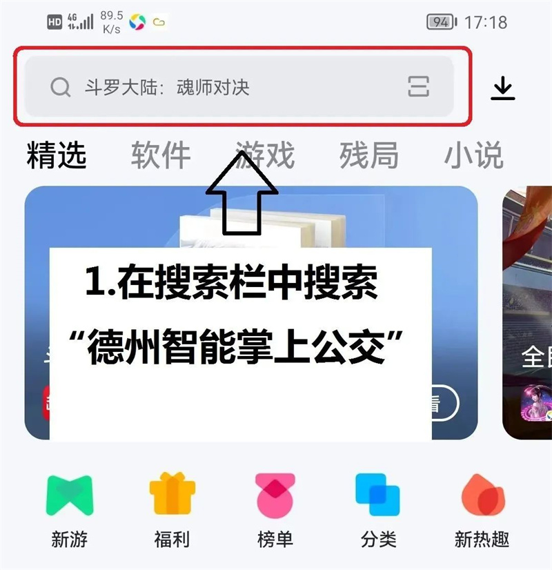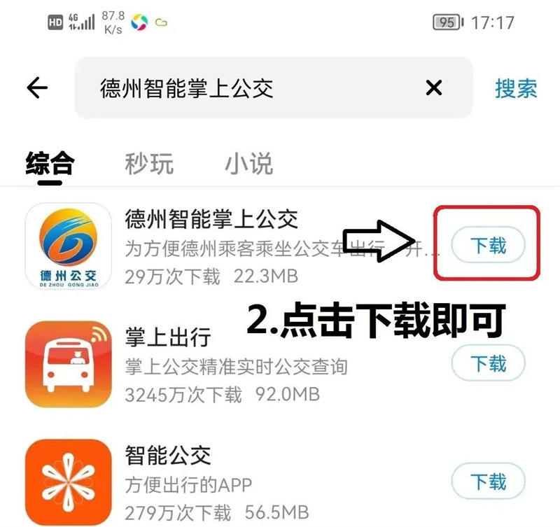 1.安卓手机在“应用宝”中,搜索并安装“德州智能掌上公交”;