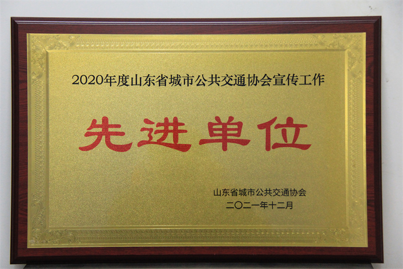 荣获2020年度山东省城市公共交通协会宣传工作“先进单位”
