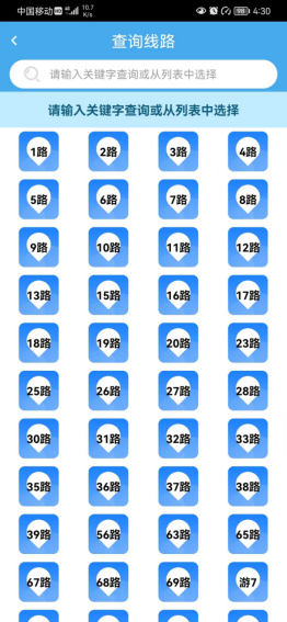 一、公交线路查询界面进行优化,把原有的“xx路”文字按钮替换为更加醒目和直观的图标按钮。