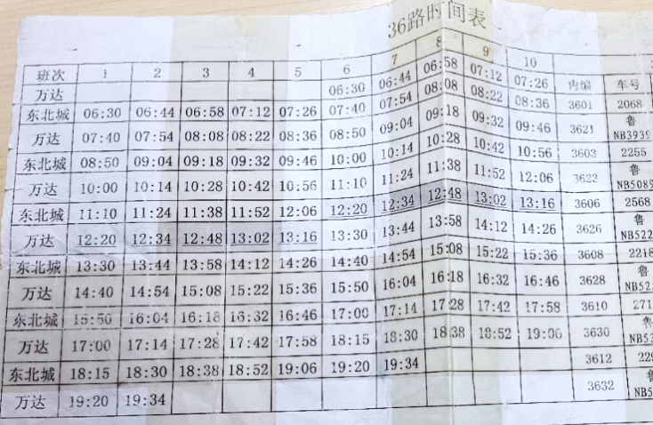也许是我与“36路”有着奇妙的缘分,新36路开通之后,我几乎每个周末都要乘坐36路去图书馆看书学习。由于我频繁坐车,36路的驾驶员们也都逐渐与我熟悉,每次坐车我们都会互相问好,有时会在等待发车时聊上几句。也因为我经常坐车,有一位驾驶员害怕我等不到车,给了我一张发车时刻表,方便我乘车。