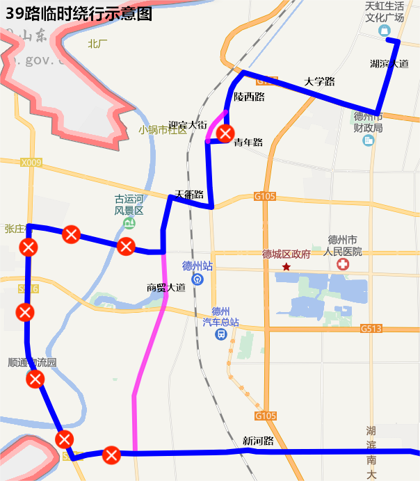 临时取消:陵西路青年路、宾海胜利花苑、帝景城家园、嘉恒小区、德州市第二实验小学、三里庄社区、魏庄社区、德州面粉厂宿舍等8站;