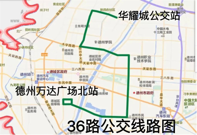 二、公交36路优化调整,由华耀城公交站--德州万达广场北站