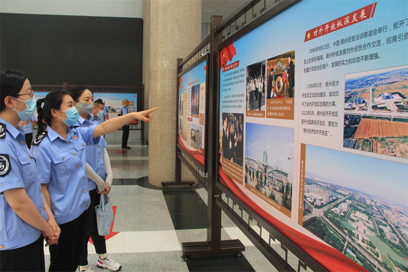 本次展览分为“开天辟地-新民主主义革命时期”、“改天换地-社会主义革命和建设时期”、“翻天覆地-改革开放和社会主义现代化建设新时期”以及“惊天动地-中国特色社会主义新时代”四大单元,全面展示了中国共产党成立100年来德州经济社会发展的辉煌成就。