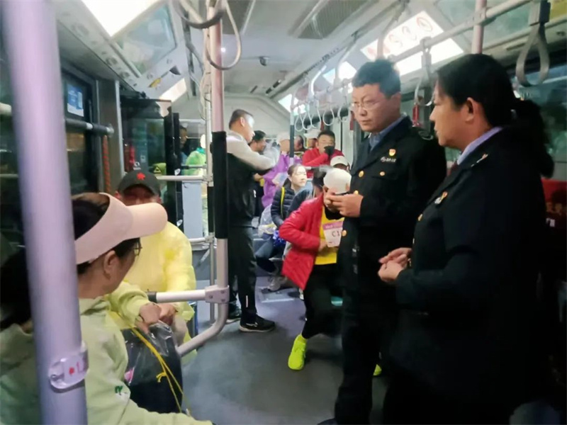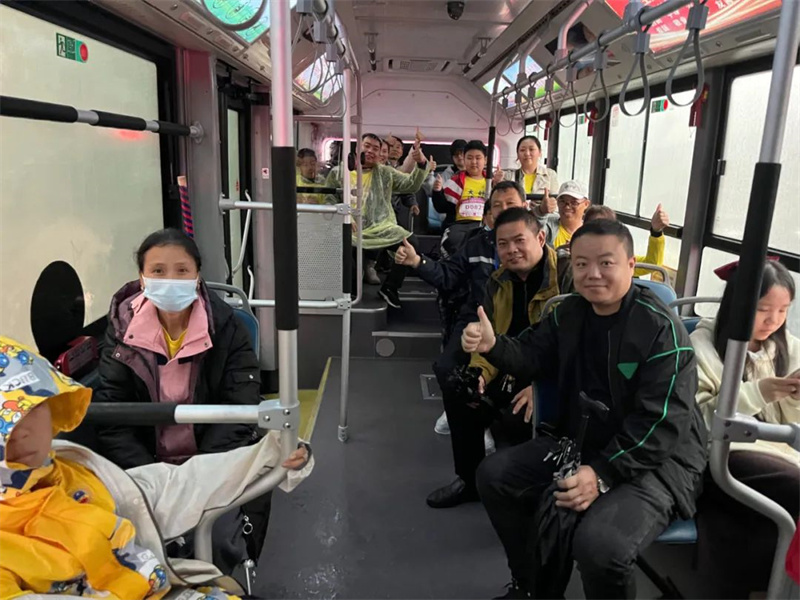 活动当天凌晨五时左右,交投公交集团保障人员及车辆前往各接驳点,将志愿者及工作人员及时运送至赛道沿途各路口、补给站,并分批次输送参赛运动员抵达赛事起点,为视障跑者提供专人专车接送服务,确保比赛顺利有序。同时各站点保障人员提前到岗,及时关注道路封控、解封情况,协助乘客、车长做好线路绕行、调整等运营服务保障工作,宣传公交免费政策、一站一码和智能掌上公交APP。