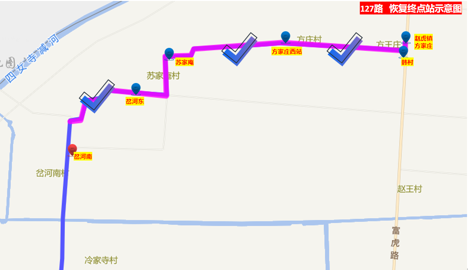 一、127路:德百批发城 ⇌ 赵虎镇方家庄: