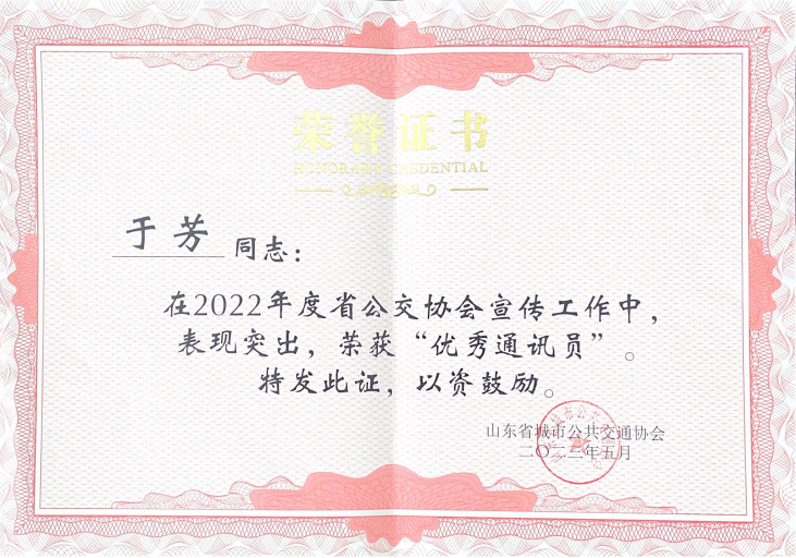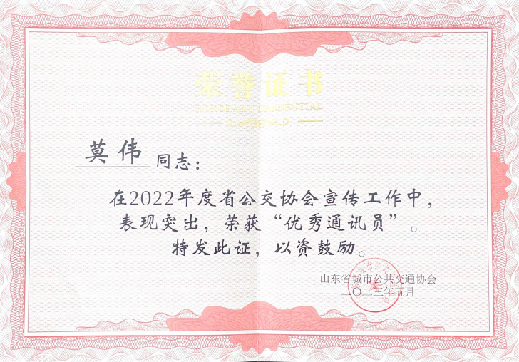 会上表彰了2021年度、2022年度宣传工作先进单位、优秀通讯员。德州交投公交集团荣获2022年度宣传先进单位,公司1人荣获2021年宣传工作先进个人、2人荣获2022年度宣传工作先进个人。