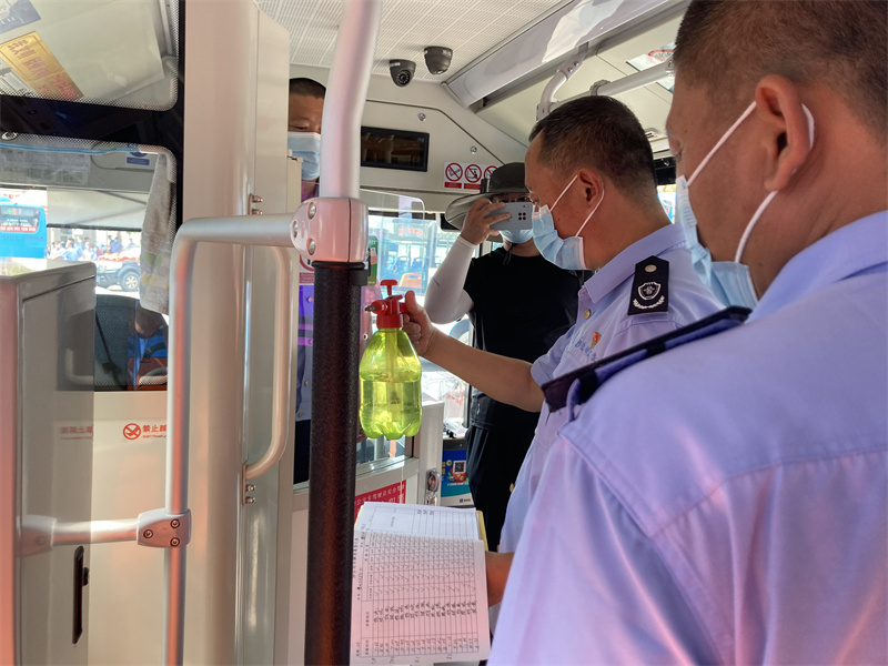 随后,党委书记、总经理郭辉带队,先后来到中邑场区、大刘庄场站、华耀城场区、天虹广场场区等公交场站督导疫情防控工作,对车辆消毒消杀、人员体温检测、场站公共区域消毒等工作落实情况进行检查,郭辉强调:疫情防控是当前最紧要的工作任务,全体同志要不折不扣落实防控工作的各项要求,以对上级党委和全市人民高度负责的态度,扎扎实实把各项工作举措抓实抓好,确保市民出行防疫安全。