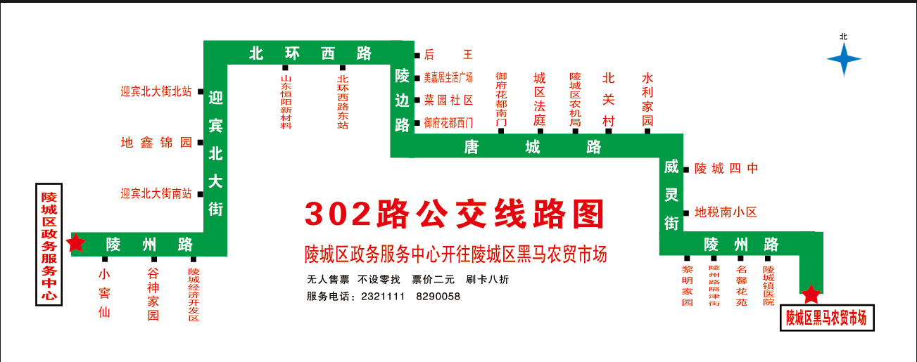 302路:首末站由陵城汽车站调整为陵城政务中心;名馨花苑调整为陵城黑马农贸市场,线路延伸11公里。
