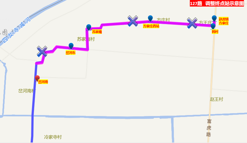 二、127路:德百批发城 至 赵虎镇方家庄 :