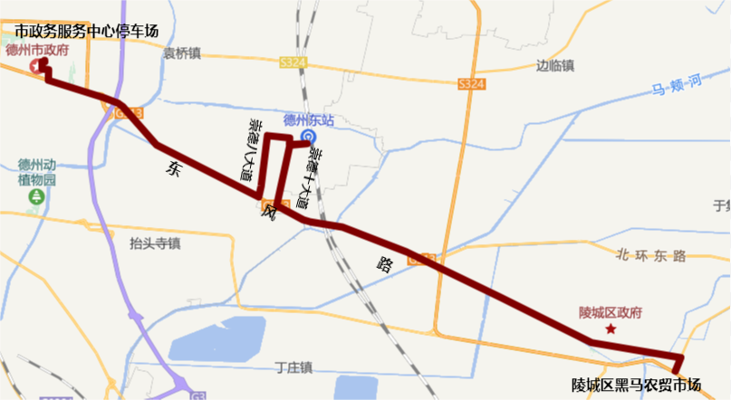 运营路线:陵城区黑马农贸市场、陵城东环、陵州路、崇德十大道、德州东站、崇德十大道、尚德十一路、崇德八大道、东风东路、康博大道、德政路、市政务服务中心停车场,返程亦同;