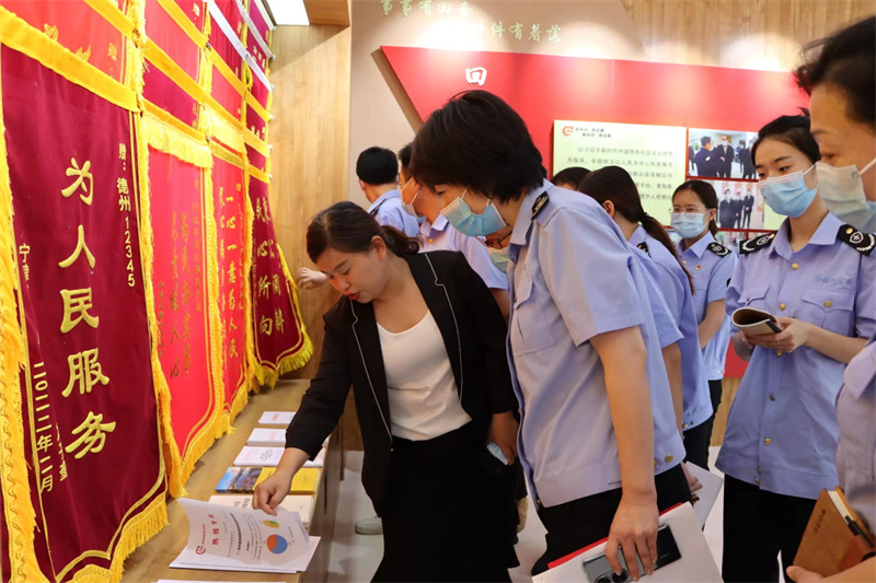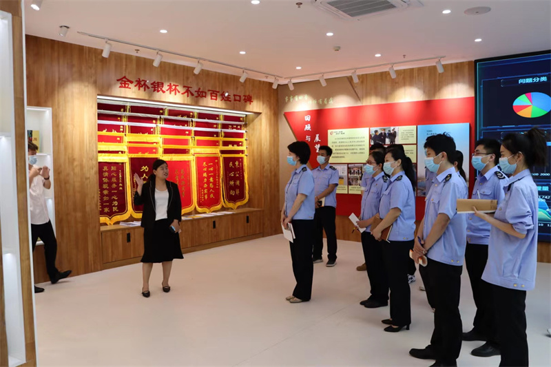 在市民热线领导的带领下,大家依次参观了受理组、转办组、办理组等“12345”市民热线的各功能分区。热线办人员主要从机构设置(岗位)、人员分工、办理流程、运行模式、督办流程、档案管理等制度进行了学习。