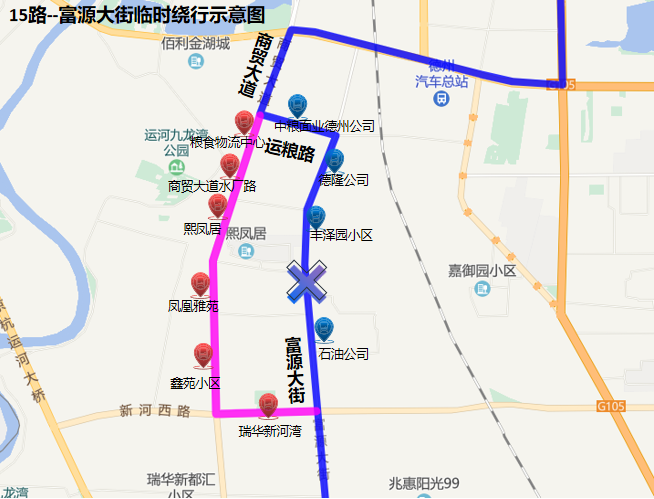 因富源大街(富源大街与新河路交叉口北侧)道路施工,即日起,15路线临时绕行,具体如下: