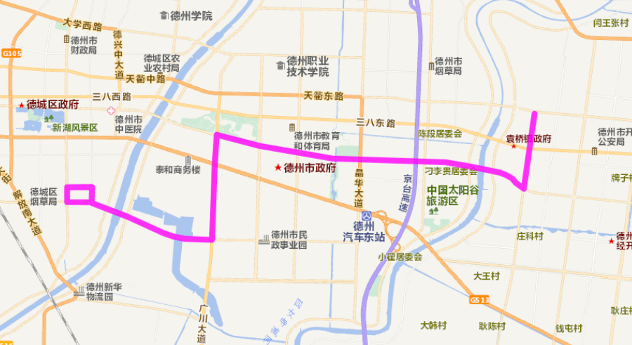 德州万达广场北站、湖滨南大道、新河路、广川大道、东方红路、崇德三大道、袁桥公交枢纽中心。