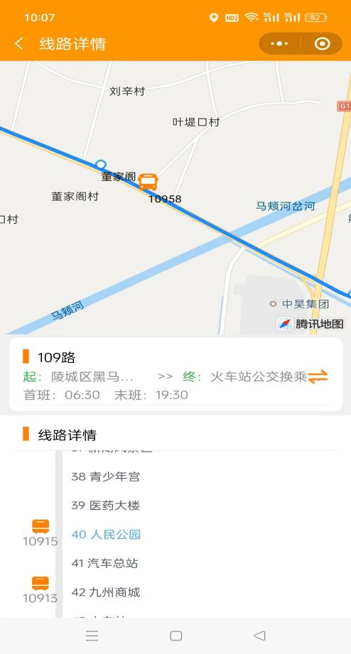 点击想要乘坐的线路,即可通过线路运行图和站点详情两种方式显示线路的运营方向、首末班时间及车辆的实时运行情况。线路运行图依托于腾讯地图,可手动放大或缩小,可以让乘客更直观地看到线路在城市中的走向、站点附近的标志性建筑等等,帮助乘客更便捷的到达目的地。站点详情是以文字形式显现,将所在站点标记为蓝色,乘客可以更直观的看到线路车辆的运营位置及最近车辆的运营情况,满足乘客的多方面需求。