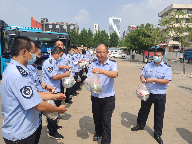 在现场,公司领导仔细询问大家的工作、生活状态,感谢大家在疫情防控和文明创建、经营生产工作中做出的贡献,眼下正是高温时节,希望大家一定要调整好状态,保重好身体,以更加良好的体魄、更加奋进的精神投入到各项工作中,同时,要提高警惕、严防严查,预防各类安全隐患,为市民提供安全便捷的公交出行服务。