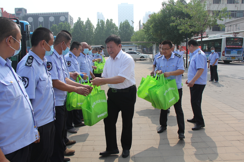 7月15日上午,市总工会副主席孙刚一行来到市公交公司火车站换乘中心场站看望慰问高温天气依然坚守运营服务一线的驾乘人员。交投集团党委委员马文洪,公司党委书记、经理马军,工会主席孙维健陪同。
