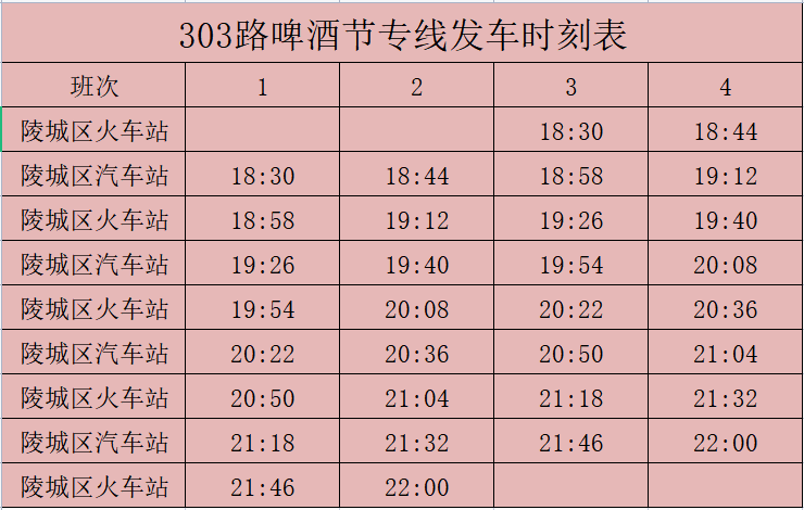 运行时间:啤酒节专线定于7月8日—7月17日运营,运营间隔14分钟。该线路为临时开通专线,如有变动,请以实际运营为准。