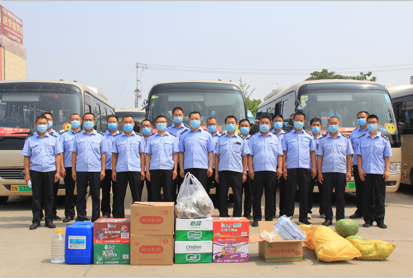马军经理一行来到武城客运中心将准备好的端午节粽子、毛巾、西瓜、矿泉水等防暑降温食品和口罩、酒精等防疫物资送到公交车长们的手中。并代表公司党委,对节日期间,不能与家人团聚,并在异地坚守在工作岗位的公交车长们表达诚挚的慰问和敬意。