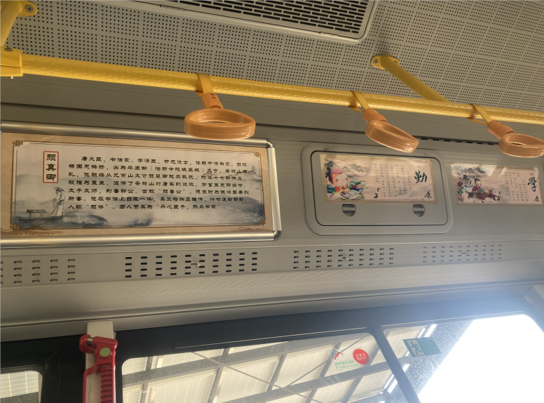 车辆标识,显著温馨。 通过布置主题车厢,将车内文明标语融入校风、校训等元素,倡导学生建立正确的价值观、人生观,