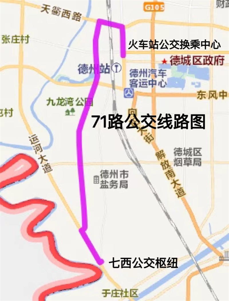 线路走向:火车站公交换乘中心-迎宾大街-天衢路-商贸大道-运河大道-七西公交枢纽,返程亦同。