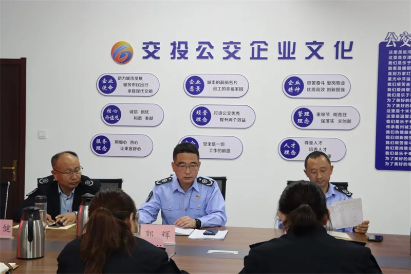 郭辉同志传达了交投集团“护航二十大,安全十个一”安全生产工作会议精神,强调要进一步提高思想认识,织牢安全网络,压实责任主体,坚决落实“疫情要防住、经济要稳住、发展要安全”重大要求。全体职工要紧绷安全弦,守住安全底线,常态化做好疫情防控工作,确保营运、服务工作落实落小落细,为广大市民提供安全、有序、优质、高效的服务,营造良好的公交出行环境。