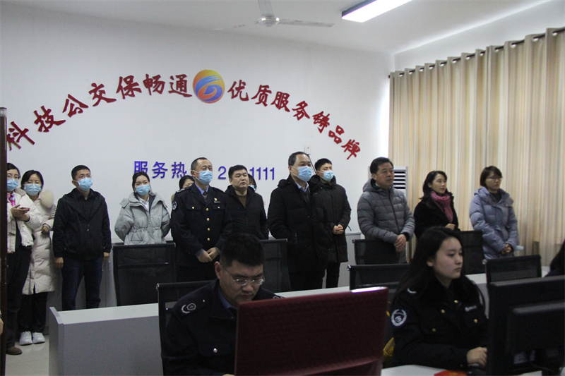 3月1日,“12345”市民热线办领导一行在市交投集团纪委书记刘俊勇等陪同下到公交公司调研指导工作,公司副总经理孙培功、纪委书记徐海城等陪同。