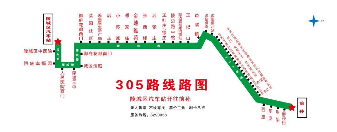 运营线路:陵城区汽车站、陵州路、颜城街、唐城路、陵边路、平安路、边临镇街、324省道、前孙镇,返程亦同;