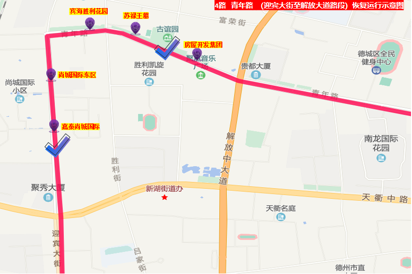 同时恢复陵西路青年路、宾海胜利花苑2站的停靠。