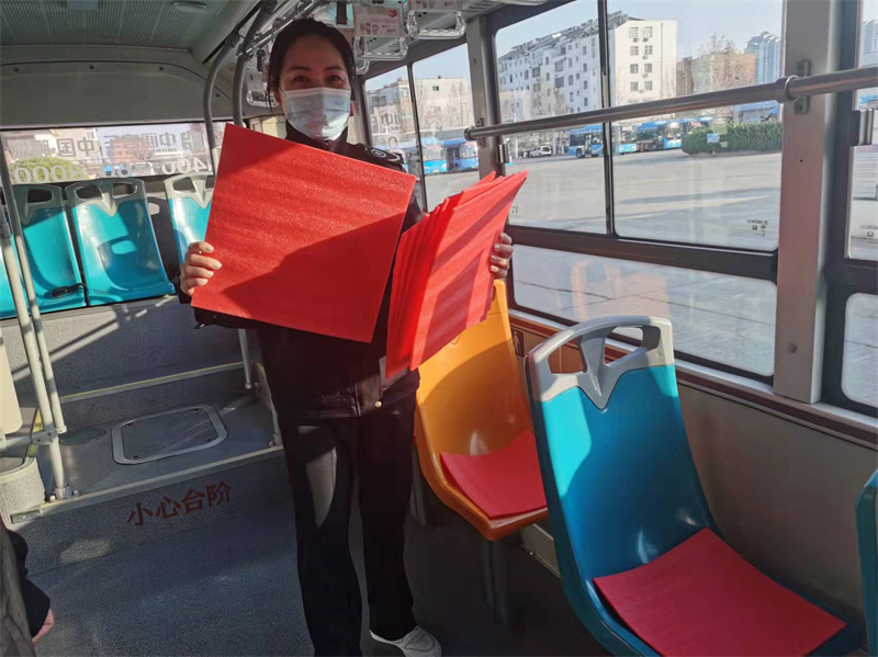 近日,市公交公司职工郭延红为2路、6路、19路、30路自费购置了880个“暖心坐垫”,并将“暖心坐垫”一一铺在公交车厢内。