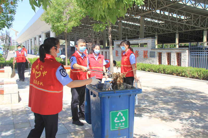 活动中,志愿者们不畏炎热、分工协作,对场站绿化卫生进行仔细清扫,有的捡拾、清扫地面烟头和纸屑,有的对地面、墙边杂草进行清除,还有的清运收集起来的垃圾。经过一上午的辛勤劳动,汗水早已浸湿志愿者们的衣服,脸上与裤腿也沾满了灰尘,但场站的卫生环境有了明显改善,党员志愿者们用实际行动感召广大乘客争做文明市民,营造美好生活环境。