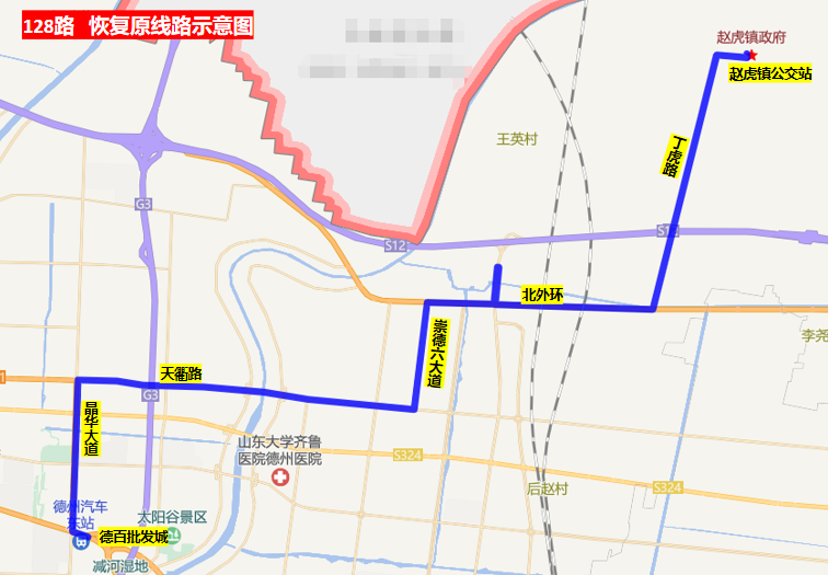 六、128路:德百批发城 ⇌ 赵虎镇公交站:
