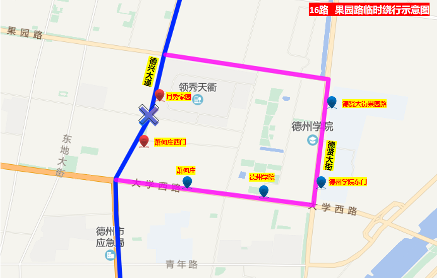 临时新增:萧何庄、德州学院、德州学院东门、德贤大街果园路4站。